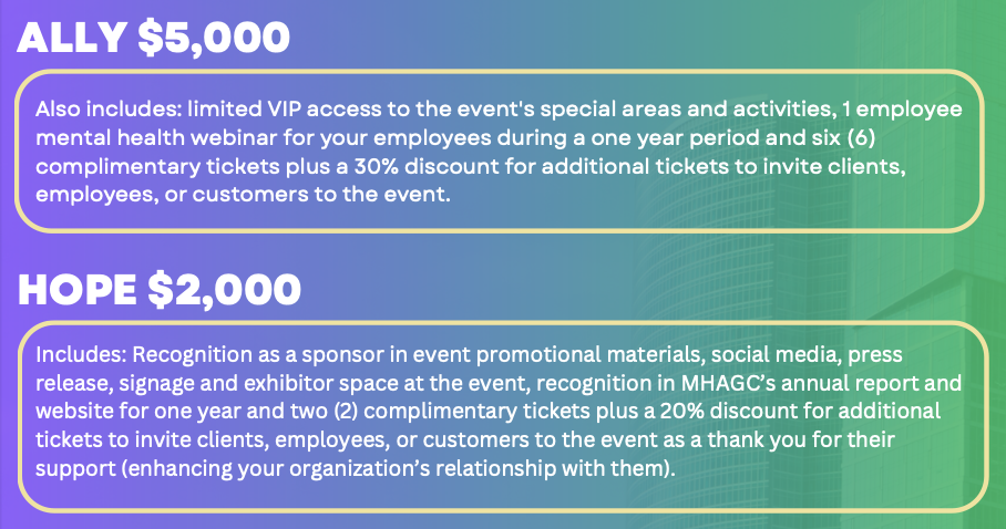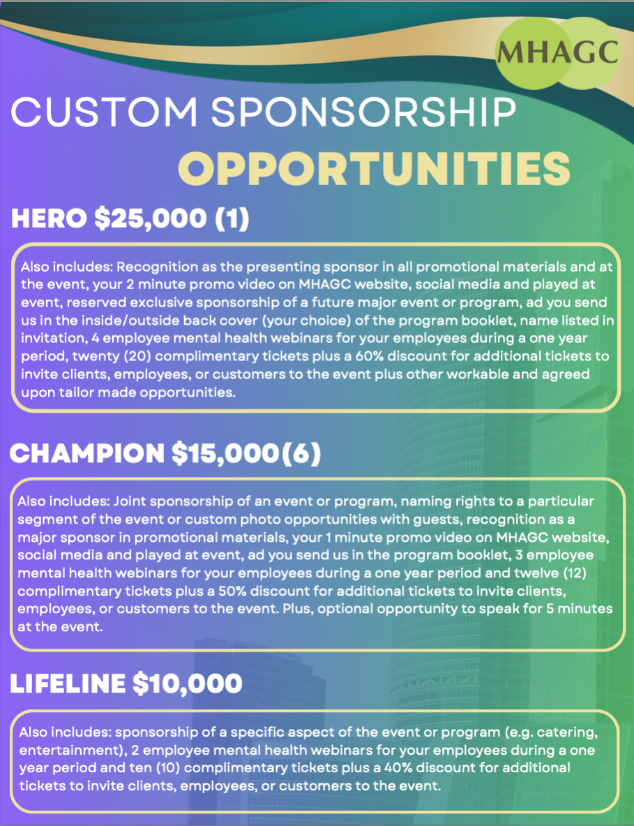 Designed for leading organizations, this sponsorship level offers complete visibility across all MHAGC channels and marketing collateral. Title naming sponsorship for the event can be discussed.